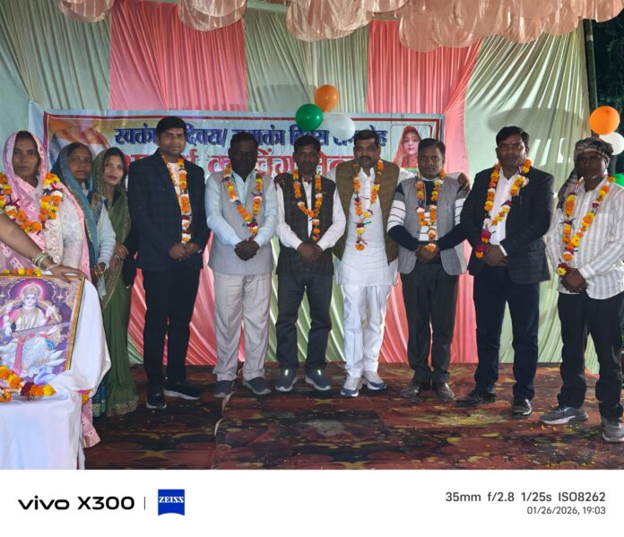 रुदौली -अयोध्या विकासखंड रुदौली की ग्राम पंचायत ऐहार में संचालित आदर्श कोचिंग सेंटर मे बड़ी धूमधाम से गणतंत्र दिवस मनाया गया गणतंत्र दिवस के शुभ अवसर पर कोचिंग संचालक एसपी रावत, जिला पंचायत सदस्य सुमन पासवान ,ग्राम प्रधान प्रतिनिधि पुनीत कुमार साहू ,नकछेद रावत, जमुना प्रसाद ,पवन कुमार ,मंडल अध्यक्ष भरत लाल रावत, शिवकरन पासवान जे ई, शिक्षक राजकुमार, शिक्षक शिवकुमार ,शिक्षिका पूनम रावत ने भी संविधान की गरिमा महिमा और देश की अखंडता एकता के प्रति बच्चों को सजक किया छात्रों के द्वारा नृत्य कला का प्रदर्शन किया गया इस मौके पर आदर्श कोचिंग सेंटर परिवार अतिथि आदि गणमान्य लोग मौजूद रहे।