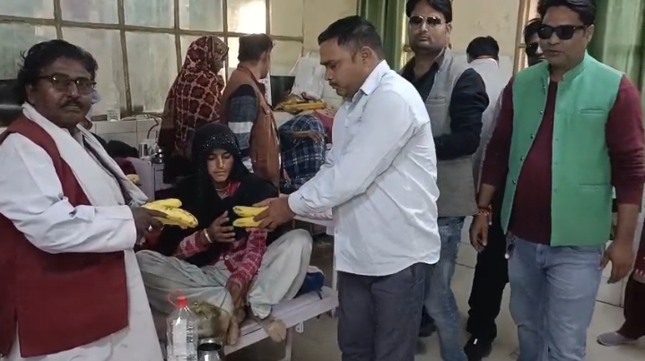कांग्रेसियों ने जिला अस्पताल में मरीजों को फल वितरण किये