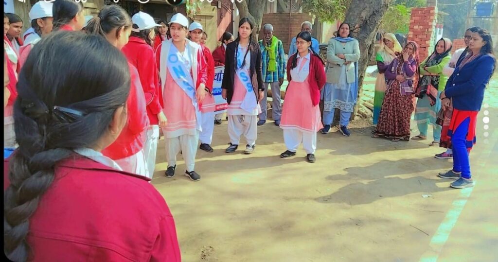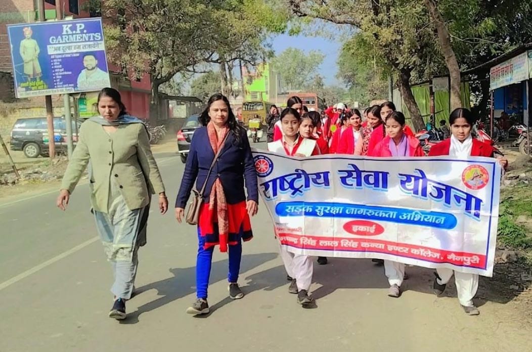 मैनपुरी। कुँवर आर.सी. कन्या इंटर कॉलेज मैनपुरी की एन.एस.एस. इकाई द्वारा प्राथमिक विद्यालय भोजपुरा मैं चल रहे सात दिवसीय विशेष शिविर के षष्ठम दिवस में आज की थीम सड़क सुरक्षा रखी गई। सर्वप्रथम आज के कार्यक्रम के मुख्य अतिथि परिवहन विभाग से देवांशु गंगवार ने कार्यक्रम का शुभारम्भ वीणावादिनी माँ सरस्वती की प्रतिमा के समक्ष दीप प्रज्वलित कर एवं स्वामी विवेकानन्द के चित्र पर माल्यार्पण कर किया l कार्यक्रम अधिकारी रेनू ने आज शिविर में आये मुख्य अतिथि देवांशु गंगवार को स्मृति चिह्न देकर और बैज लगाकर स्वागत सम्मान किया। मुख्य अतिथि देवांशु गंगवार ने कैंप में सभी स्वयंसेवकों को यातायात व्यवस्था के तहत आने वाले नियमो के बारे में विस्तार से जानकारी दी l स्वयंसेवकों ने देवांशु गंगवार से सड़क के नियमो के बारे में विभिन्न प्रश्न किये, उन्होंने सभी बच्चों के विभिन्न प्रश्नों के उत्तर एकदम सटीक दिए।आज एन एस एस स्वयंसेवकों ने ग्राम भोजपुर में जागरूक्ता रेली निकलकर यतायात नियम का पालन करने का संदेश दियाl दुपहिया वाहन चालको को हेलमेट पहनने चार पहियां चालको को सीट बेल्ट लगाने, नियमानुसर वाहनो में सावरियां बैठें आदि महत्वपूर्ण जानकारी दी। स्वयंसेवकों ने नुक्कड़ नाटक की प्रस्तुति दी सड़क सुरक्षा के लिए आस्था और श्रेया ने रंगीली बनाई शिविर में 50 स्वयंसेवक उपस्थित रहे l समृद्धि चौहान, विशाखा ,रिया आशुति,अलीब्शा ,माही , करिशमा, आराध्या शर्मा, सलोनी, सुनैना, चांदनी ,लक्ष्मी पांडे, अंशिका मिश्रा प्रिया आदि बच्चों ने अन्य नाटक प्रस्तुत किये। अलिश्बा ने कहा रफ़्तार नहीं जिम्मेदरी पहचान बन जाए। हर मोड़ पर जीवन की कीमत याद आये l एक नियम पालन सौ खुशियाँ बचायें l सड़क पर सावधानी घर तक सलामत पहुचाये l कार्यक्रम में सहायक शिक्षिकाओ के रूप में प्रियंका, कुसुम राव और सुमन,खेल शिक्षिका भावना आदि अन्य स्टाफ मौजूद रहा।
