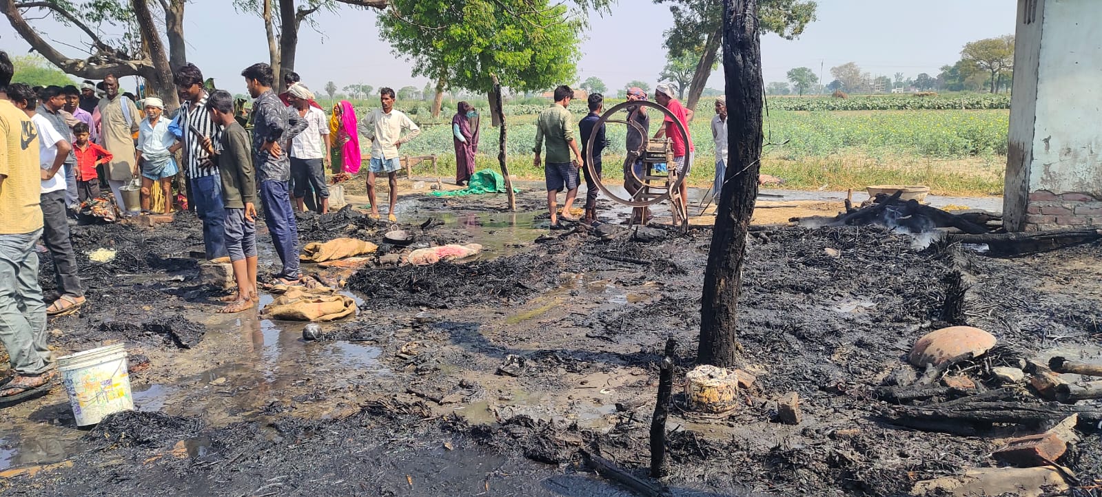 बदायूं उसावां ब्लॉक में उसैहत थाना क्षेत्र के गांव कटरा उसावां ब्लॉक में उसैहत थाना क्षेत्र के गांव कटरा आदतगंज में जयसिंह चौहान के धर में आग लगने से लाखों रुपऐ काघरेलू सामान और धर जलकर राख हो गया इस घटना में जयसिंह की बुजुर्ग मां को सुरक्षित बाहर निकाला जयसिंह ने बताया कि सुबह चूल्हे पर खाना बनाने के बाद वह और उसके बच्चे खेत पर गेहूं काटने गए थे धर पर केवल उनकी बुजुर्ग मां मौजूद थी आग लगने का कारण अज्ञात है ग्रामीणों ने बताओ कि धर से तेज धुआं निकलता देख तुरंत दर्जनों लोग मौके पर जमा हो गए लोगों ने तत्काल जयसिंह चौहान की बुजुर्ग मां को घर से बाहर निकाला तब तक आग की लपटे तेजी से फैलने लगी थी ग्रामीणों ने तत्काल पास के इंजन पंपसेट और नल-बाल्टियों की मदद से आग बुझाने का प्रयास किया आग बुझने तक घर का सारा सामान जल चुका था जिसमें पशुओं का भूसा भी शामिल था परिवार का इस घटना से बुरा हाल है सूचना मिलने पर ग्राम प्रधान सतीश कुमार मौके पर पहुंचे उन्होंने पीड़ित परिवार को सरकार की ओर से हर संभव मदद दिलाने का आश्वासन दिया है