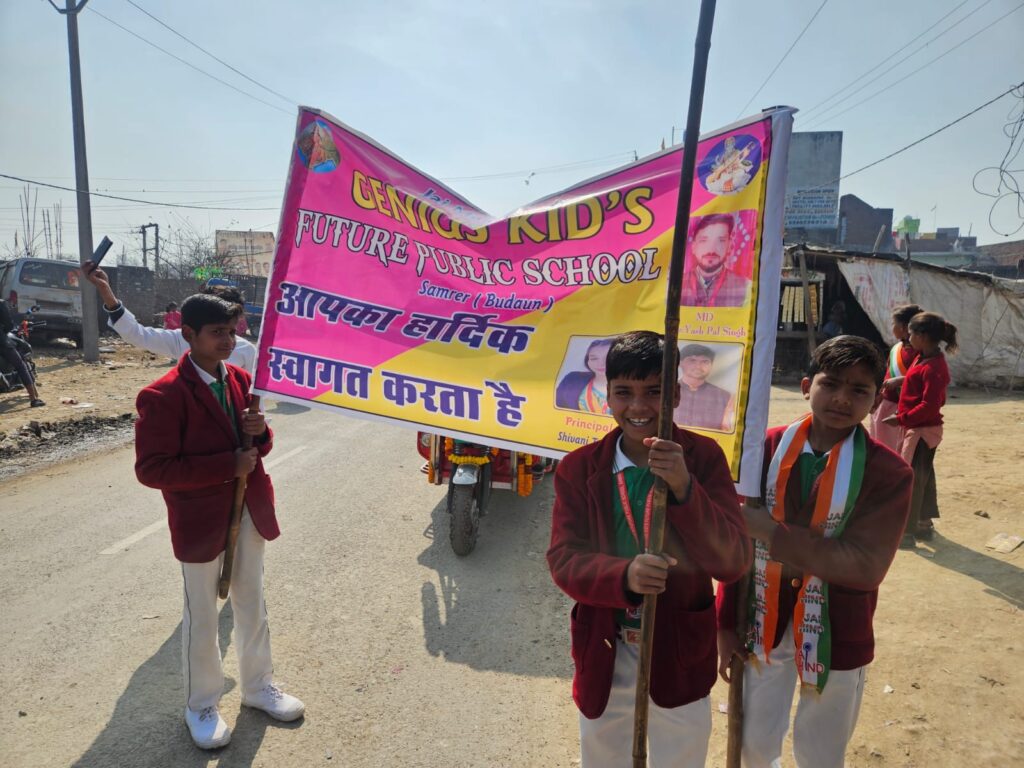 बदायूं समरेर कस्बे में आज जीनीयस किड्स फ्यूचर पब्लिक स्कूल द्वारा देशभक्ति से जुड़ी कई गतिविधियों का आयोजन किया गया। इस अवसर पर स्कूल के नन्हे-मुन्ने बच्चों ने हाथों में तिरंगा लेकर भव्य तिरंगा रैली निकाली, जिसने पूरे क्षेत्र का माहौल देशभक्ति से भर दिया।रैली की शुरुआत स्कूल परिसर से हुई, जो मेन रोड होते हुए बाजार से गुजरती हुई वापस स्कूल में आकर संपन्न हुई। रैली के दौरान बच्चों ने पूरे जोश और उत्साह के साथ “हिंदुस्तान जिंदाबाद”, “पाकिस्तान मुर्दाबाद”, “इंकलाब जिंदाबाद” जैसे नारे लगाए। बच्चों की मासूम आवाज़ों में देशप्रेम की गूंज सुनकर राहगीर भी रुक गए और तालियों के साथ बच्चों का उत्साह बढ़ाया।स्कूल प्रशासन द्वारा रैली को शांतिपूर्ण और अनुशासित तरीके से संपन्न कराने के लिए पूरी व्यवस्था की गई थी। शिक्षकों की निगरानी में बच्चों को लाइन से चलाया गया, साथ ही सुरक्षा का भी विशेष ध्यान रखा गया।विद्यालय प्रबंधन का कहना है कि ऐसे आयोजनों का उद्देश्य बच्चों में देशभक्ति, अनुशासन और राष्ट्रीय एकता की भावना को मजबूत करना है।कुल मिलाकर, यह तिरंगा रैली समरेर में एक प्रेरणादायक संदेश छोड़ गई कि देश का भविष्य—आज के ये नन्हे बच्चे—अपने वतन से प्यार करना जानते हैं।