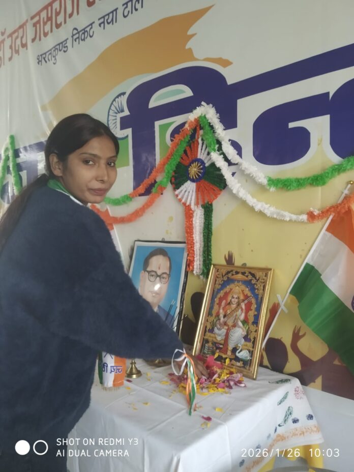 अयोध्या डाक्टर उदय जसराज रत्न महिला पी जी कालेज में हर वर्ष की भांति हर्षोल्लास पूर्वक मनाया गया 77वां गणतंत्र दिवस आपको बताते चलें कि जिले के डाक्टर उदय जसराज रत्न महिला पी जी कालेज निकट भरतकुंड द्वारा हर वर्ष की भांति हर्षोल्लास पूर्वक मनाया गया 77वां गणतंत्र दिवस,विद्यालय प्रबंधन द्वारा परिसर में तिरंगे का ध्वजारोहण करके, राष्ट्र गान करके भारत माता की जय घोष का नारा दिया तथा संविधान निर्माता डाक्टर भीमराव अम्बेडकर के साथ साथ सरस्वती के चित्र पर माल्यार्पण कर विविध कार्यक्रम ,देश भक्ति गीत का,अनेकता में एकता की गीत सुन्दर प्रस्तुति करके देश को आजादी दिलाने वाले बीर सपूतों को याद करते हुए, तथा विद्यालय प्रबंधक जसवंती देवी ने अपने उद्बोधन में देश को आजादी दिलाने वाले बीर सपूतों की कुर्बानी को याद करते भारतीय संविधान की बखान करके खूबसूरती को बयां की साथ साथ विद्यालय की प्राचार्या ने कार्यक्रम का संचालन किया, बच्चों का उत्साह वर्धन भी किया, तथा विद्यालय स्टाफ द्वारा प्रबंधक को माला भेंट करके व शिक्षिकाओं द्वारा माला पहनाकर स्वागत किया गया, साथ विद्यालय परिवार के शिक्षक व अभिभावक को माला पहनाकर स्वागत किया गया, महाविद्यालय की प्रबंधक ने गणतंत्र दिवस की हार्दिक शुभकामनाएं भी दी उक्त मौके पर विद्यालय प्रबंधन स्टाफ सहित छात्र छात्राएं एवं अभिवावक गण मौजूद रहे