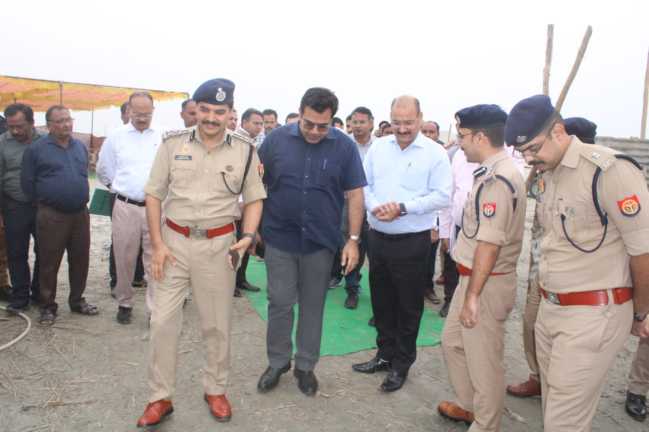 मेरठ हृषिकेश भास्कर यशोद, डीआईजी कलानिधि नैथानी, जिलाधिकारी डा0 वी0के0 सिंह व एसएसपी विपिन ताडा ने संबंधित अधिकारियो के साथ मखदूमपुर गंगा घाट मेले का स्थलीय निरीक्षण कर मेले के अंतर्गत की जा रही तैयारियो का जायजा लिया। मौके पर उपस्थित संबंधित अधिकारी द्वारा बताया गया कि प्रत्येक वर्ष जिला पंचायत द्वारा मेले का आयोजन विधिवत किया जाता है। उन्होने वहां प्रकाश व्यवस्था, बैरिकेडिंग, सुरक्षा व्यवस्था, ट्रैफिक व्यवस्था, आवागमन की व्यवस्था, पार्किंग की व्यवस्था, घाटों पर साइनेज, मोबाइल टॉयलेट सहित अन्य व्यवस्थाओ का जायजा लिया व संबंधित को आवश्यक दिशा-निर्देश दिये। उन्होने कहा कि मेला स्थल की समुचित साफ-सफाई, कचरा निस्तारण हेतु उचित व्यवस्था सुनिश्चित की जाये। मेले में मिलने वाले खाद्य पदार्थों में गुणवत्ता का विशेष ध्यान रखा जाए। गोताखोर, स्ट्रीमर बोट आदि व्यवस्थाओं को पूर्णतः सुनिश्चित कर लिया जाए। एसपी ट्रैफिक राघवेंद्र मिश्रा, एसपी देहात अभिजीत कुमार, एसडीएम मवाना संतोष कुमार सहित अन्य संबंधित अधिकारी व कर्मचारीगण उपस्थित रहे।