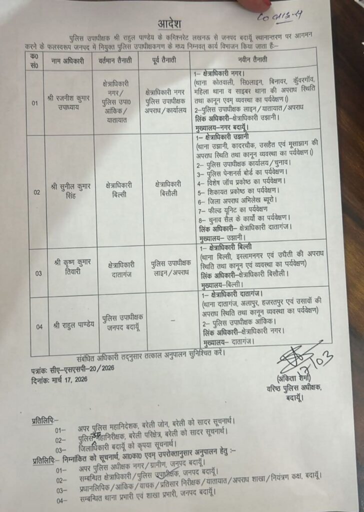 Homeबदायूंदातागंज के नये क्षेत्रधिकारी होंगे राहुल पांडे दातागंज के नये क्षेत्रधिकारी होंगे राहुल पांडे By Chief Editor - Ashok kumar March 17, 2026 20 Share FacebookTwitterPinterestWhatsApp रिपोर्ट वैभव गुप्ता दातागंज के नये क्षेत्रधिकारी होंगे राहुल पांडे। Share FacebookTwitterPinterestWhatsApp Chief Editor - Ashok kumarhttps://indiatimes7.in RELATED ARTICLES अयोध्या जिला कारागार का संयुक्त स्थलीय निरीक्षण किया गया March 24, 2026 बदायूं घर में लगी आग लाखों का सामान जलकर राख March 24, 2026 अयोध्या चौकी प्रभारी यदुनाथ सिंह लाइन हाजिर March 24, 2026 LEAVE A REPLY Cancel reply Comment: Please enter your comment! Name:* Please enter your name here Email:* You have entered an incorrect email address! Please enter your email address here Website: Save my name, email, and website in this browser for the next time I comment. Most Popular जिला कारागार का संयुक्त स्थलीय निरीक्षण किया गया March 24, 2026 घर में लगी आग लाखों का सामान जलकर राख March 24, 2026 चौकी प्रभारी यदुनाथ सिंह लाइन हाजिर March 24, 2026 बाइपास निर्माण को आखिरकार मिली हरी झंडी,लोगों ने की विधायक के प्रयास की सराहना March 24, 2026 Load more