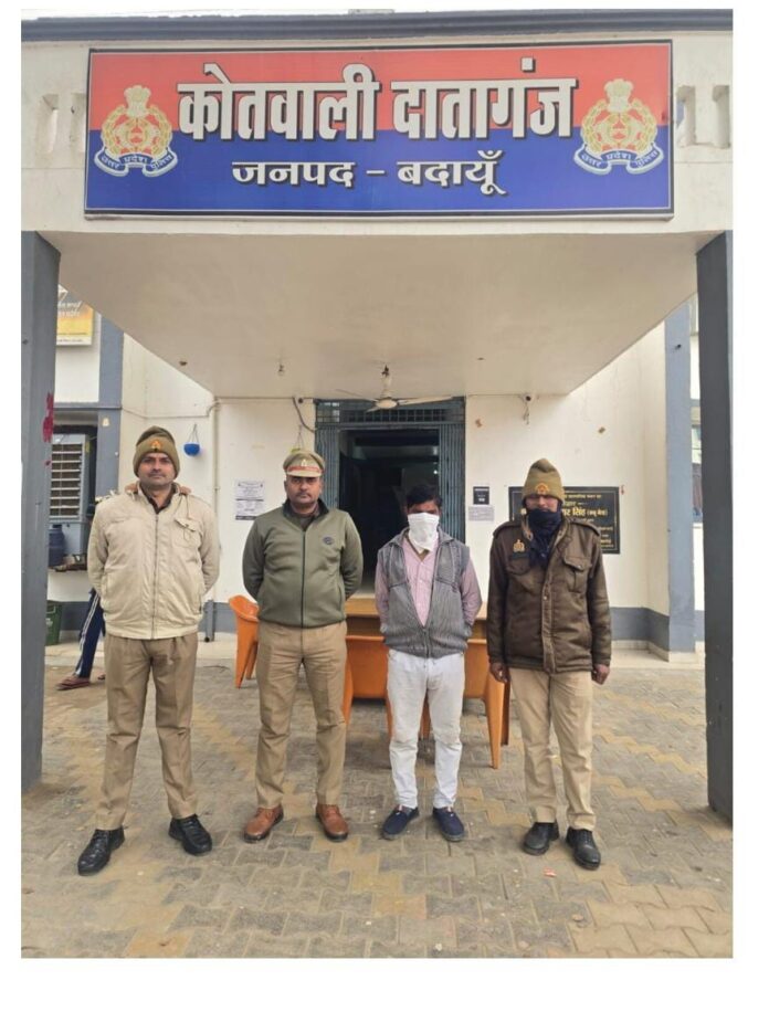 बदायूँ पुलिस अधीक्षक, डा0 बृजेश कुमार सिंह के आदेशानुसार एवं अपर पुलिस अधीक्षक नगर बदायूँ,विजयेन्द्र द्विवेदी के निर्देशन में व क्षेत्राधिकारी दातागंज, बदायूँ कृष्ण कुमार तिवारी के पर्यवेक्षण में अपराधियों के विरुद्ध चलाये जा रहे अभियान के अन्तर्गत प्रभारी निरीक्षक दातागंज के कुशल नेतृत्व में थाना दातागंज पुलिस द्वारा आज दिनांक 25.12.2025 को थाना दातागंज पर पंजीकृत मु0अ0सं0 437/25 धारा 140(4) BNS व 3/4 पाक्सो एक्ट मे वांछित अभियुक्त हरीओम पुत्र नन्हे निवासी मौहल्ला बादाम नगर वार्ड नं0- 10 कस्बा व थाना दातागंज जनपद बदायूँ को गिरफ्तार किया गया । गिरफ्तार अभियुक्त हरिओम उपरोक्त को मा0 न्यायालय के समक्ष पेश किया गया।