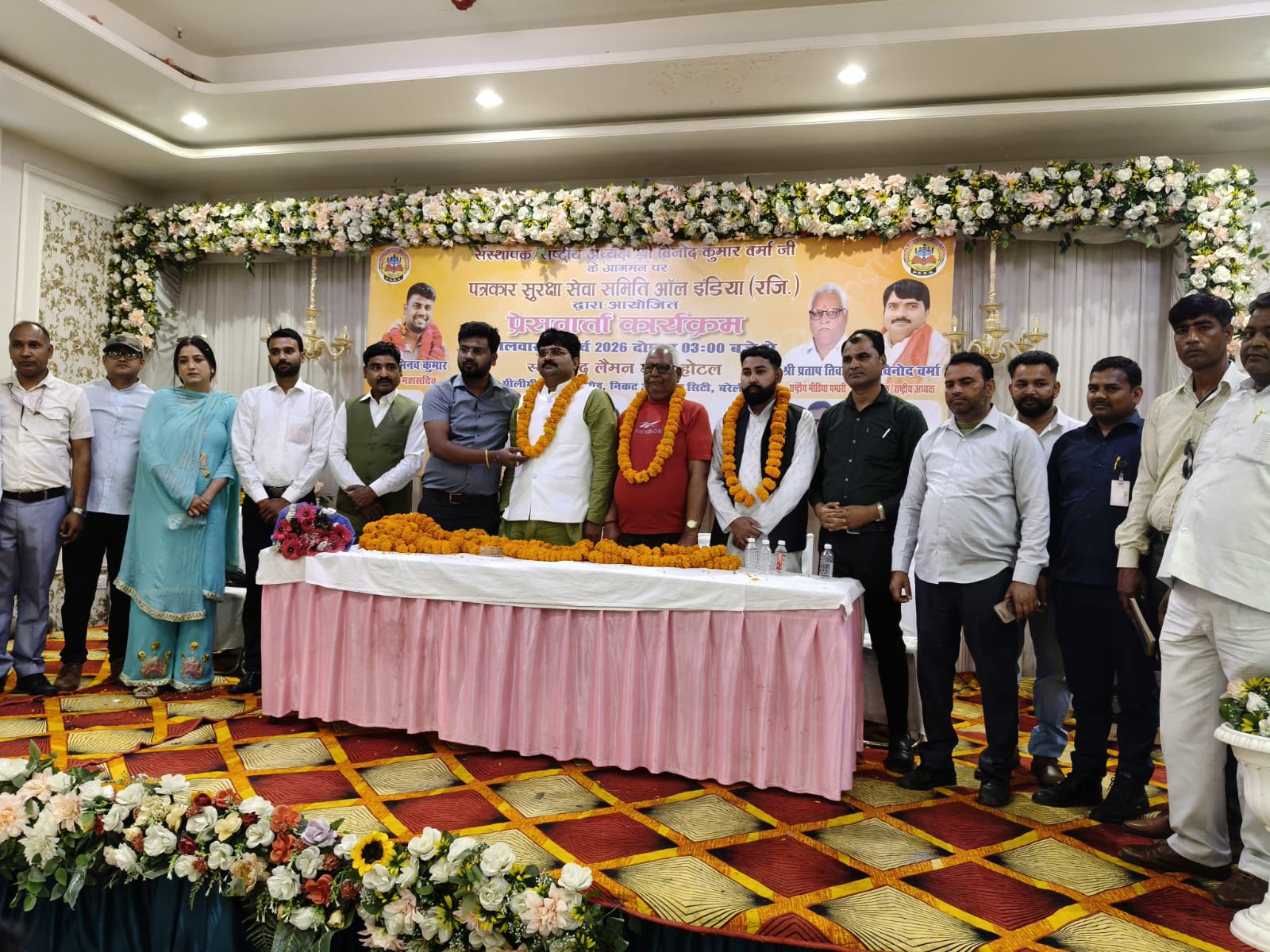 बरेली पत्रकार सुरक्षा सेवा समिति ने की समीक्षा बैठक 14 सूत्रीय मांगों को लेकर संगठन ने किया मंथन अभिनव कुमार को प्रमोशन कर बनाया गया राष्ट्रीय उपाध्यक्ष पत्रकार सुरक्षा सेवा समिति (रजिस्टर्ड) आल इंडिया के राष्ट्रीय अध्यक्ष विनोद वर्मा ने मंगलवार को पहुंचकर एक रिसॉर्ट में संगठन की बैठक कर समीक्षा की।जिसमें मेरठ मंडल,बरेली मंडल के जिलाध्यक्षों ने भाग लिया।राष्ट्रीय अध्यक्ष ने अपने प्रदेश महासचिव अभिनव कुमार की गतिविधियों व संगठन के प्रति लगन को देखते हुए उनका प्रमोशन कर राष्ट्रीय उपाध्यक्ष के पद पर मनोनीत कर मंच से घोषणा की।प्राप्त जानकारी के अनुसार पत्रकार सुरक्षा समिति के राष्ट्रीय अध्यक्ष मा.बिनोद कुमार वर्मा ,राष्ट्रीय मीडिया प्रभारी प्रताप तिवारी व मंडल सचिव लखनऊ नादिम खान का 17मार्च 26 मंगलवार को बरेली पहुंचने पर संगठन के जिलाध्यक्ष दिलीप कुमार, प्रदेश महासचिव सचिव अभिनव कुमार, प्रदेश सचिव रूबी खान के व्दारा फूलमालाओं से भव्य स्वागत किया गया।जहांपर राष्ट्रीय अध्यक्ष ने संगठन के पदाधिकारियों व स्थानीय पत्रकारों के साथ समीक्षा बैठक कर संगठन के विस्तार पर विस्तृत चर्चा की ।वहीं इकाई का विस्तार करते हुए कई पदाधिकारियों की नियुक्ति भी की। इस दौरान आयोजित बैठक में राष्ट्रीय अध्यक्ष ने संगठन की गतिविधियों और उद्देश्यों पर विस्तार से प्रकाश डाला।राष्ट्रीय अध्यक्ष विनोद वर्मा ने बताया कि उनका संगठन वर्तमान में देश के 17 राज्यों में सक्रिय रूप से कार्य कर रहा है। उत्तर प्रदेश के लगभग 40 जनपदों में संगठन का गठन किया जा चुका है।संगठन के राष्ट्रीय मीडिया प्रभारी प्रताप तिवारी ने कहा कि पत्रकारों की सुरक्षा, सम्मान और अधिकारों को सुनिश्चित करना समिति का मुख्य उद्देश्य है। इसी क्रम में संगठन की ओर से 14 सूत्रीय मांगपत्र के व्दारा पत्रकारों के लिए पेंशन योजना, स्वास्थ्य सुरक्षा, दुर्घटना बीमा, टोल फ्री सुविधा, भूमि आवंटन, आयुष्मान योजना का लाभ और पत्रकार सुरक्षा कानून आदि की तरफ शासन का ध्यान आकृष्ट किया गया है। राष्ट्रीय अध्यक्ष माननीय विनोद वर्मा ने जोर देते हुए कहा कि पत्रकारिता लोकतंत्र का चौथा स्तंभ है। इसलिए पत्रकारों को आर्थिक, सामाजिक और सुरक्षा प्रदान करना सरकार की प्राथमिक जिम्मेदारी है। उन्होंने मांग की कि पत्रकारों के लिए न्यूनतम 25 हजार रुपये मासिक पेंशन, 50 वर्ष की आयु के बाद विशेष पहचान पत्र और परिवार सहित कैशलेस चिकित्सा सुविधा सुनिश्चित की जाए।बैठक में उपस्थित पदाधिकारियों ने संगठन को मजबूत बनाने और पत्रकार हितों के लिए संघर्ष जारी रखने का संकल्प लिया साथ ही सरकार से मांग की गई कि पत्रकारों के लिए स्पष्ट मानक तय कर उनकी सुरक्षा और सम्मान को 