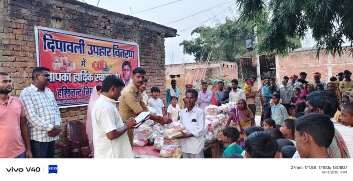 परंपरागत तरीके से हर वर्ष की भांति जिला पंचायत सदस्य हरिश्चंद्र निषाद ने मलिन बस्ती में पहुंचकर गरीबों बीच दीपावली मनाने की गिफ्ट भेंट किया गिफ्ट