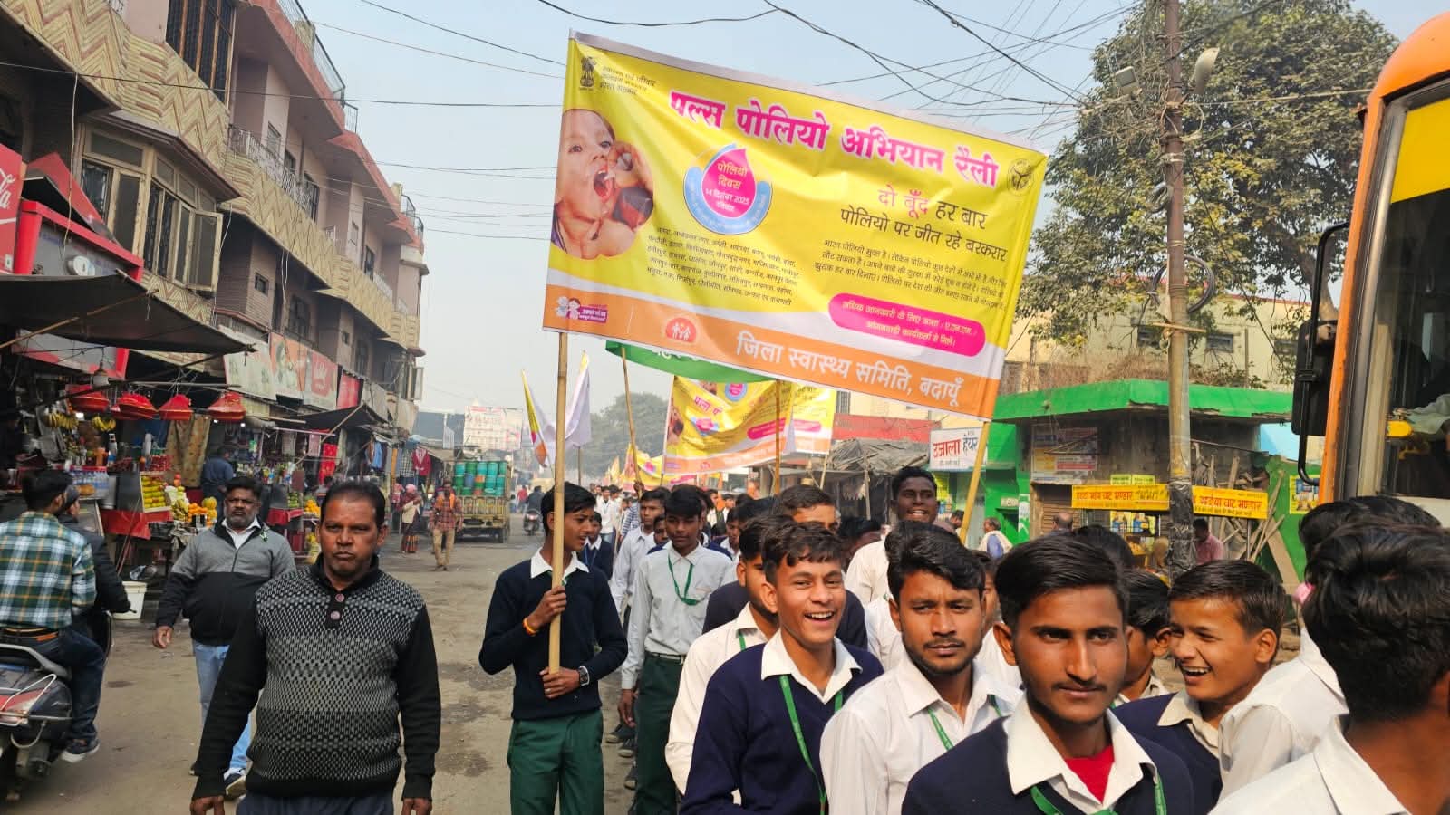 बदायूं : मुख्य चिकित्सा अधिकारी (सीएमओ) ने बताया कि जिले में एसएनआईडी पल्स पोलियो अभियान 14 दिसंबर 2025 को चलाया जाएगा। इस दिन 0 से 5 वर्ष तक के सभी बच्चों को पोलियो की दो बूंदें पिलाई जाएंगी।अभियान के बारे में जागरूकता फैलाने के लिए 12 दिसंबर को सीएमओ कार्यालय से एक रैली निकाली गई। रैली को सदर विधायक महेशचंद गुप्ता और मुख्य चिकित्सा अधिकारी डॉ. रामेश्वर मिश्रा ने हरी झंडी दिखाकर रवाना किया। रैली में विभिन्न स्कूलों के छात्र–छात्राओं और अध्यापकों ने हिस्सा लिया। यह रैली सीएमओ कार्यालय से शुरू होकर भगवान परशुराम चौक, रोडवेज, पुलिस लाइन, वन विभाग होते हुए वापस सीएमओ कार्यालय पर समाप्त हुई। पल्स पोलियो अभियान की गतिविधियां इस प्रकार रहेंगी—14 दिसंबर 2025: बूथ पर पोलियो ड्रॉप पिलाई जाएगी 15 से 19 दिसंबर: घर–घर जाकर टीम बच्चों को दवा पिलाएगी 22 दिसंबर: बी-टीम द्वारा पुनः गतिविधियां चलाई जाएंगी रैली में एसीएमओ, डीसीएमओ, जिला प्रतिरक्षण अधिकारी, डब्ल्यूएचओ के एसएमओ, यूनिसेफ कोऑर्डिनेटर, डीएचईआईओ, अर्बन कोऑर्डिनेटर सहित कई अधिकारी मौजूद रहे।