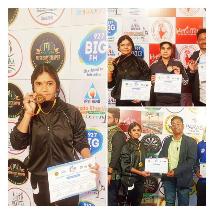 थाना भवन/शामली जनपद शामली के थाना भवन क्षेत्र की रहने वाली पायल कश्यप ने कानपुर के मलिक गेस्ट हाउस में आयोजित प्रथम पैरा डॉक्स राष्ट्रीय चैंपियनशिप में शानदार प्रदर्शन करते हुए गोल्ड मेडल जीतकर जनपद का नाम रोशन किया है। इस उपलब्धि के साथ ही उनका चयन आगामी अप्रैल माह में मलेशिया में होने वाली अंतरराष्ट्रीय पैराडॉक्स चैंपियनशिप के लिए हो गया है।कानपुर में आयोजित यह दो दिवसीय राष्ट्रीय चैंपियनशिप थी, जिसमें देश के विभिन्न राज्यों से आए लगभग 120 खिलाड़ियों ने भाग लिया। उत्तर प्रदेश के कई खिलाड़ियों ने भी इस प्रतियोगिता में अपनी प्रतिभा का प्रदर्शन किया। थाना भवन क्षेत्र के गांव लतीफगढ़ की खिलाड़ी पायल कश्यप ने महिला वर्ग में उत्कृष्ट प्रदर्शन करते हुए प्रथम स्थान प्राप्त किया और गोल्ड मेडल अपने नाम किया।इस प्रतियोगिता में शामली जनपद के थाना भवन क्षेत्र के गांव भैंसानी की खिलाड़ी भावना ने भी शानदार प्रदर्शन करते हुए तृतीय स्थान हासिल किया एवं ब्रॉन्ज मैडल प्राप्त किया। वही पुरुष वर्ग में अमर नाथ चौहान ने द्वितीय स्थान प्राप्त कर सिल्वर जीता।राष्ट्रीय स्तर पर शानदार सफलता के बाद जब पायल कश्यप अपने निवास स्थान पहुंचीं, तो क्षेत्र में उनका जोरदार स्वागत किया गया। कस्बे के सम्मानित लोगों ने उन्हें माला पहनाकर सम्मानित किया और उज्ज्वल भविष्य की शुभकामनाएं दीं।पायल कश्यप और भावना की यह सफलता जनपद शामली और पूरे क्षेत्र के लिए गर्व की बात है। उनकी यह उपलब्धि अन्य युवा खिलाड़ियों को खेल के क्षेत्र में आगे बढ़ने के लिए प्रेरित करेगी।