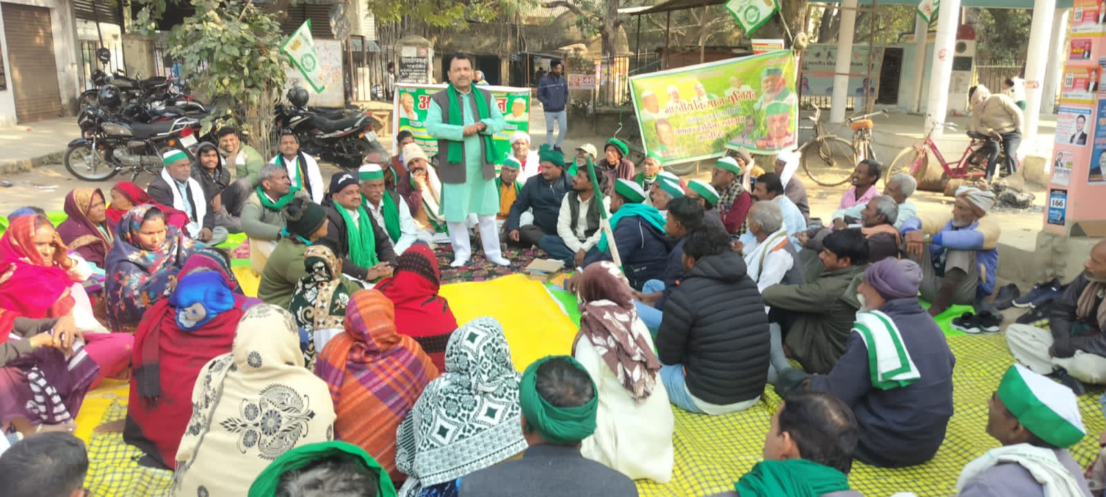बीकापुर अयोध्या। मन्शाराम वर्मा द्वारा बीकापुर तहसील परिसर में किए जा रहे हैं आमरण अनशन के समर्थन में भारतीय किसान यूनियन द्वारा आयोजित किसान महापंचायत पर अधिकारियों के न पहुंचने पर भारतीय किसान यूनियन कार्यकर्ताओं पदाधिकारियों ने जोरदार प्रदर्शन करते हुए उप जिला अधिकारी का घेराव किया और उप जिला अधिकारी कार्यालय के समक्ष पंचायत शुरू कर दिया किसान पंचायत में उप जिला अधिकारी श्रेया, तहसीलदार दिनेश कुमार,नायब तहसीलदार घनश्याम शुक्ला, नायब तहसीलदार रामखेलावन नगर पंचायत की अधिशासी अधिकारी अंजू यादव, अध्यक्ष नगर पंचायत श्री राकेश कुमार राणा पहुंचकर बिन्दुवार समस्याओं पर चर्चा करते हुए कुछ समस्याओं का त्वरित निदान किया कुछ समस्याओं के निदान हेतु आश्वासन दिया। नसीरपुर मूसी वार्ड के अंतर्गत वन राजा के पूरवा में लगभग 40 वर्षों से बंद आम रास्ता को तहसील प्रशासन पहुंचकर बाउंड्री वालों को गिराते हुए रास्ता खुला दिया नगर पंचायत अध्यक्ष राकेश पांडे राणा व अधिशासी अधिकारी ने आश्वासन दिया कि 2 दिन के अंदर तीन मीटर 30 सेंटीमीटर की चौड़ाई में पिच रोड बना दिया जाएगा सेमरा पिच मार्ग रिपेयरिंग तथा नाली बनाने का आश्वासन दिया, सब्जी मंडी की स्थापना के लिए नगर पंचायत अध्यक्ष ने बताया कि जमीन चिन्हित करके प्रस्तावित कर दी गई है धन के अभाव में निर्माण नहीं हो रहा है अभिलंब सब्जी मंडी का निर्माण हो जाएगा, नगर पंचायत अध्यक्ष ने कहा कि गौशालाओं की क्षमता वृद्धि की गई है तथा कान्हा गौशालाओं का निर्माण किया गया है बीकापुर के आसपास एक भी छुट्टा जानवर सड़क या खेतों में नहीं मिलेंगे तथा ग्राम रामनगर तथा बरेहटा में तालाबों पर हुए अवैध कब्जे व अवैध निर्माण के संबंध में नायब तहसीलदार के नेतृत्व में टीम का गठन किया गया और अभिलंब अवैध निर्माण व अवैध कब्जा हटाने का आश्वासन दिया गया सड़क के किनारे मोरंग बालू गिट्टी व्यापारियों द्वारा मोरंग बालू गिट्टी रखकर रास्ता अवरूद्ध करने के मामले में उप जिला अधिकारी बीकापुर तथा क्षेत्राधिकार पुलिस ने आश्वासन दिया कि पीपी एक्ट में कार्रवाई करते हुए अवरोध को हटाया जाएगा बिजली विभाग की समस्या के संबंध में उप जिला अधिकारी बीकापुर में बताया कि विद्युत विभाग के अधिकारियों से वार्ता करके शत प्रतिशत समस्याओं का समाधान कराया जाएगा। पंचायत को संबोधित करते हुए भारतीय किसान यूनियन के राष्ट्रीय महासचिव घनश्याम वर्मा ने कहा कि प्रशासन की उदासीनता के चलते किसानों की जायज समस्याओं का समाधान नहीं हो पा रहा है जिसके कारण किसानों को आमरण अनशन किसान महापंचायत करना पड़ रहा है उप जिला अधिकारी भी ने कहां की किसान अपनी समस्या लेकर मेरे पास आवे प्रत्येक समस्याओं का समाध