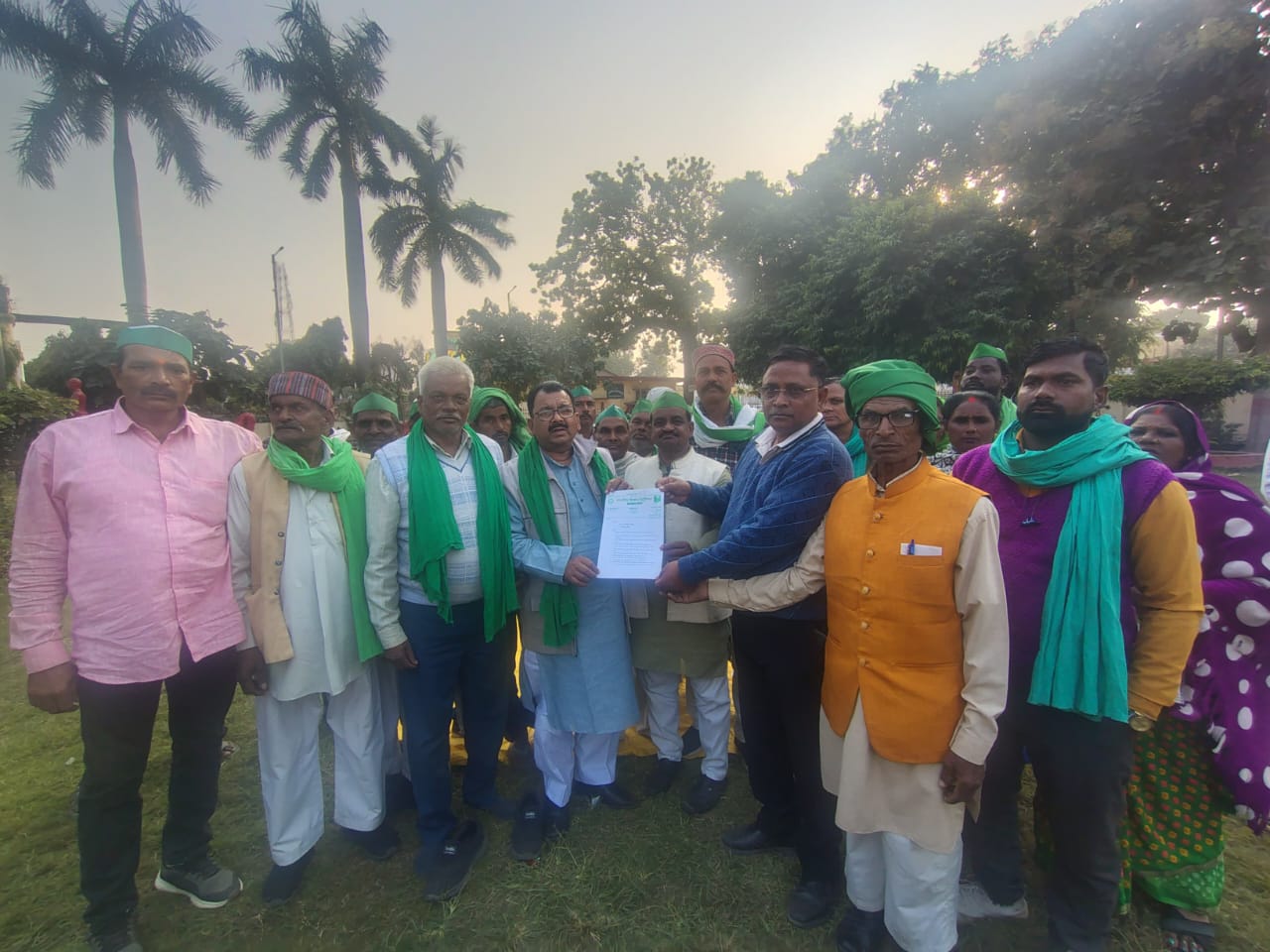 अयोध्या। संयुक्त किसान मोर्चा एवं भारतीय किसान यूनियन के आवाहन पर जनपद अयोध्या में भारतीय किसान यूनियन द्वारा गांधी पार्क में पंचायत/ प्रदर्शन करके नायब तहसीलदार गौरी शंकर वर्मा को 14 सूत्रीय ज्ञापन सौंप कर समस्या समाधान करने की मांग किया गया। प्रदर्शनकारियों को संबोधित करते हुए भारतीय किसान यूनियन के राष्ट्रीय महासचिव घनश्याम वर्मा ने कहा कि 05 साल पहले ऐतिहासिक दिल्ली आंदोलन में जीत हुई थी जिसकी वर्षगांठ पर प्रदर्शन किया जा रहा है घनश्याम वर्मा ने कहा कि देश की सरकार ने वादा किया था कि न्यूनतम समर्थन मूल्य गारंटी कानून अधिनियम बनाकर सभी फसलों को खरीदने की गारंटी दी जाएगी परंतु ऐसा ना करके केंद्र सरकार ने वादा खिलाफी किया है एमएसपी गारंटी कानून बनाने की मांग की गई घनश्याम वर्मा ने छुट्टा जानवरों से खेती तथा दुर्घटनाओं को बचाने के लिए जिला प्रशासन छुट्टा जानवरों को वास्तविक रूप से पकडकर गौशालाओं में बंद करे। घनश्याम वर्मा ने कहा कि उत्तर प्रदेश सरकार द्वारा गन्ना ढुलाई दर में वृद्धि करके किसानों को गन्ना मूल्य वृद्धि का लाभ मिलने से वंचित कर दिया है। जिला अध्यक्ष राम गणेश मौर्य ने जनपद में डीएपी खाद पर्याप्त मात्रा में उपलब्ध कराने तथा गेहूं का बीज निर्धारित दर 936 रुपए प्रति 40 किलो पैकेट की बिक्री करवाने की मांग किया। भाकियू नेता फरीद अहमद ने कहा कि एस आई आर फॉर्म भरने में बीएलओ द्वारा लापरवाही बरती जा रही है मतदाताओं को फार्म उपलब्ध नहीं कराया जा रहा है फॉर्म भरने के नाम पर अभिलेख मांग कर परेशान किया जा रहा है जो उचित नहीं है। प्रदर्शन में डॉ0 आर एस सरोज, राजेश मिश्रा, प्रेम शंकर वर्मा,राम सुमेर भारती, राम बचन भारती, जितेंद्र कुमार, गब्बर गोस्वामी, तुलसीराम गोस्वामी, रविंद्र मौर्य, जगन्नाथ पटेल ,विवेक पटेल, राम बकश उर्मिला निषाद, आसमा बानो, राजू निषाद, सरोज वर्मा, जगदीश यादव आदि कई दर्जन लोग शामिल रहे।