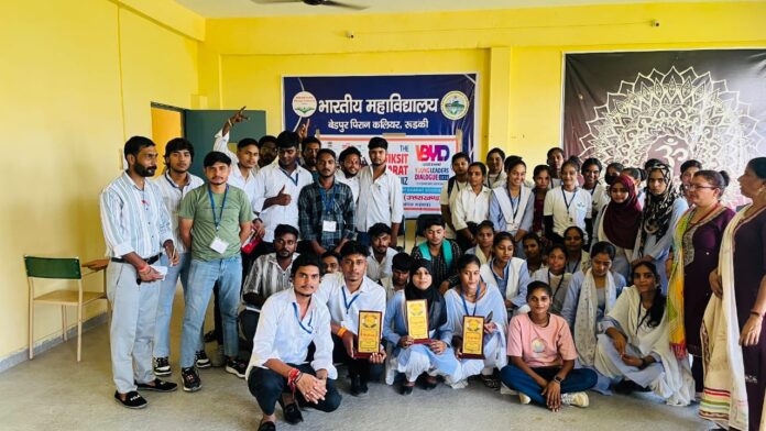 हरिद्वार– भारतीय महाविद्यालय, बेड़पुर पिरान कलियर में आज ‘हिंदी पखवाड़ा’ के अंतर्गत युवा कार्यक्रम एवं खेल मंत्रालय, भारत सरकार द्वारा “सोशल मीडिया” विषय पर निबंध प्रतियोगिता का सफल आयोजन किया गया। इस कार्यक्रम का नेतृत्व मेरा युवा भारत के राष्ट्रीय स्वयंसेवक श्री मनदीप सिंह राठौर ने किया।प्रतियोगिता में महाविद्यालय के छात्र-छात्राओं ने उत्साहपूर्वक भाग लिया। कार्यक्रम में छात्रों का मनोबल बढ़ाने हेतु महाविद्यालय प्रभारी श्री लवप्रीत सिंह, सुभारती आई.टी.आई. के प्रधानाचार्य श्री विकास भटनागर तथा कार्यक्रम संयोजक श्रीमती अंजू सैनी और शालू देवी, शिक्षकगण संजना, आशा प्रजापति, रोमी सैनी, स्वाति रानी, श्री अंकुर सैनी, शेखर, अनुपम कुमार, मीरा सैनी तथा अकादमिक प्रभारी डॉ. मनीषा जदली उपस्थित रहे।निबंध प्रतियोगिता का उद्देश्य छात्रों में लेखन प्रवृत्ति को प्रोत्साहित करना और भावों को अभिव्यक्त करने की क्षमता को विकसित करना रहा। प्रतियोगिता उपरांत परिणाम घोषित किए गए, जिसमें बी.ए. तृतीय वर्ष की नाहीद ने प्रथम स्थान, संजना ने द्वितीय स्थान और बी.ए. प्रथम वर्ष के आर्यन ने तृतीय स्थान प्राप्त किया।कार्यक्रम के समापन पर विजयी प्रतिभागियों को महाविद्यालय प्रभारी श्री लवप्रीत सिंह एवं राष्ट्रीय स्वयंसेवक श्री मनदीप सिंह राठौर द्वारा स्मृति चिन्ह प्रदान कर सम्मानित किया गया। साथ ही, श्री मनदीप राठौर ने महाविद्यालय प्रभारी को भी स्मृति चिन्ह भेंट किया।