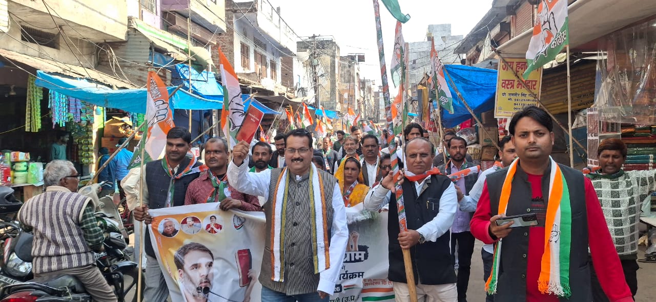 मैनपुरी प्रदेश नेतृत्व के निर्देशानुसार जिला कांग्रेस कमेटी द्वारा मनरेगा बचाओ संग्राम पदयात्रा का शुभारंभ कांग्रेस कार्यालय मंडी धर्मदास से निकल कर नगर भ्रमण करते हुये 15 किमी भोगांव नगर मे भ्रमण करते हुये घंटा घर भोगांव होते हुए एमआई गार्डन पर समापन हुई। जिसमे मुख्य अतिथि मैनपुरी कॉर्डिनेटर श्री करन सिंह राजपूत जी रहे व कार्यक्रम प्रभारी श्री विजय मिश्रा जी तथा कार्यक्रम की अध्यक्षता जिला अध्यक्ष गोपाल कुलश्रेष्ठ जी ने की।आज दिन शुक्रवार को मनरेगा बचाओ संग्राम पद यात्रा कार्यक्रम में सैकड़ो कांग्रेस के कार्यकर्ता एवं पदाधिकारीयों ने प्रतिभाग किया जिसमें गोपाल कुलश्रेष्ठ जिलाध्यक्ष कांग्रेस कमेटी मैनपुरी ने तिरंगा ध्वज लेकर शुभारंभ किया।मुख्य अतिथि करन सिंह राजपूत ने बताया कि केंद्र सरकार द्वारा मनरेगा विरोधी एवं मजदूरों के खिलाफ बनाए गए नियमों मजदूरों को दिया गया जुमला जो गरीब का हक छीनने का कानून लागू किया गया है जिसके विरोध कांग्रेस पार्टी द्वारा प्रदेश नेतृत्व के अनुपालन किया गया।जिलाअध्यक्ष गोपाल कुलश्रेष्ठ के कहा कि मनरेगा योजना में किसानों को 100 दिन के रोजगार की गारंटी थी किसान जब चाहे अपनी मर्जी से काम ले सकता था जिसे आज भाजपा खत्म करना चाहती है। मनरेगा पद यात्रा के माध्यम से विरोध किया गया।पद यात्रा के दौरान जगह जगह कांग्रेसी जनों का स्वागत किया गया।साथ ही भोगांव नगर में भ्रमण के दौरान नगर पंचायत कार्यकाल में महात्मा गांधी, नेता जी सुभाष चंद्र बोस के साथ अन्य क्रान्तिकारियों चित्र पर माल्यार्पण कर नमन किया गया।इस कार्यक्रम में पूर्व जिलाध्यक्ष संकोच गौड, पी सी चतुर्वेदी(वरिष्ठ जिला उपाध्यक्ष), पीसीसी अरविन्द यादव, सुघर सिंह कठेरिया l