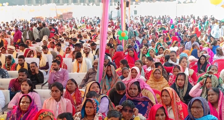 अयोध्या जिले के बीकापुर विकास खण्ड क्षेत्र व बीकापुर नगर पंचायत क्षेत्र के मुख्यमंत्री सामूहिक विवाह योजनान्तर्गत आज भारतीय इण्टर कालेज बीकापुर के मैदान में। एक साथ 100 जोड़े दांपत्य सूत्र में बंधे। विवाह कार्यक्रम में बतौर मुख्य अतिथि के रूप में पहुंचे बीकापुर के विधायक डॉक्टर अमित सिंह चौहान , हुआ भव्य स्वागत। स्वागत के उपरांत श्री विधायक ने सभी जोड़ों पुष्प वर्षा करके आशीर्वाद भी दिया, उज्वल भविष्य की कामना भी की,उसी के कड़ी में भाजपा कार्यकर्ताओं ने शैलेंद्र पांडे मा तथा गौरव पांडे के नेतृत्व में बुलडोजर से की पुष्प वर्षा की गई। कार्यक्रम में विवाह गीत एवं सांस्कृतिक रंग मंचन कार्यक्रमों की रही धूम। वैवाहिक बंधन में बंधने वाले जोड़ों को शासन के अनुसार निर्देशित वस्तुओं से नवाजा गया। शादी जोड़ो के पवित्र बंधन में वैदिक मित्रों से गूंजायमान रहा कॉलेज का विवाह मंडप व मैदान। सुरक्षा का दिखा पुख्ता इंतजाम। बारातियों एवं घरातियों की हुई जमकर खातिरदारी। समाज कल्याण अधिकारी रणविजय सिंह खंड विकास अधिकारी अखिलेश मिश्रा सहायक विकास अधिकारी उषा शर्मा ,बद्रीनाथ पांडे यास्मीन बानो सुरेश मिश्रा सहित ने व्यवस्थापक मण्डल की जिम्मेदारी संभाली, तथा कार्यक्रम का संचालन रोचक अंदाज में मुकुल आनंद द्वारा किया गया। कार्यक्रम में मुख्य रूप से ब्लॉक प्रमुख दिनेश वर्मा ,नगर पंचायत अध्यक्ष राकेश पांडे राणा ,अनिल उपाध्याय, शैलेंद्र पांडे मोनु ,गौरव पांडे, गोविंद यादव ,संदीप सिंह सोनू ,सुनील मिश्रा विशाल सिंह ,भरत जी श्रीवास्तव, जिला पंचायत सदस्य मोहम्मद मुस्लिम शेख, मोहम्मद नफीस रहे मौजूद। जिला समाज कल्याण अधिकारी रणविजय द्वारा बताया गया कि बीकापुर ब्लाक से 45 मसौधा से 43 बीकापुर नगर क्षेत्र से 12 लाभार्थियों ने भाग लिया l