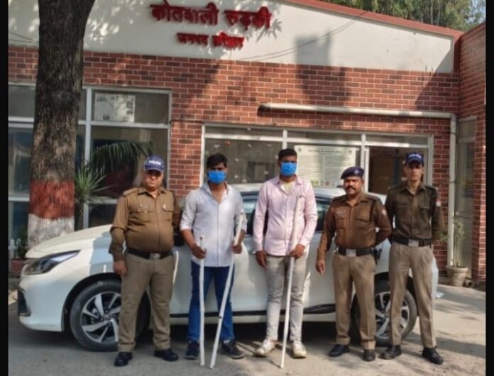 रुड़की शहर में दहशत फैलाने वाले रविदास धाम राष्ट्रीय अध्यक्ष योगेश कुमार पर जानलेवा हमले के मामले में हरिद्वार पुलिस ने बड़ी सफलता हासिल की है पुलिस ने वारदात के 30 घंटे के भीतर ही दो मुख्य आरोपियों को गिरफ्तार कर लिया है जानकारी के अनुसार शकरपुर निवासी योगेश कुमार शुक्रवार श्याम अपने दोस्तों के साथ कार से लौट रहे थे तभी कोतवाली रोड की क्षेत्र के एक सुनसान मोड पर एक गाड़ी ने ओवरटेक करके रास्ता रोक लिया कार से बाहर निकले 2 से 3 युवक लोहे की रोड और बस के डंडों से लेंस थे उन्होंने बिना किसी बात के योगेश और उसके साथियों पर हमला बोल दिया इसी दौरान योगेश और उसके साथ ही गंभीर रूप से घायल हो गए जबकि कार के शीशे और बॉडी को भी नुकसान पहुंचा घटना के बाद हमलावर फरार हो गए घायल योगेश को अस्पताल में भर्ती कराया गया अगले दिन योगेश के भाई उमेश कुमार ने कोतवाली रुड़की में शिकायत दर्ज कराई मामला की गंभीरता को देखते हुए एसपी हरिद्वार ने प्रभारी निरीक्षक मनीष उपाध्याय विशेष वरिष्ठ उप निरीक्षक मनोज गैरोला के नेतृत्व में टीम गठित की,,,,,, पुलिस ने सीसीटीवी फुटेज और मुकबरो की जानकारी के आधार पर तेजी से जांच की जांच के दौरान पुलिस की टीम आरोपियों के गांव मकंदु पुर,,,,, थाना मंगलौर,,,, तक पहुंची जहां दोनों आरोपियों सुमित और राजन पुत्र पप्पू को दबोच लिया गया,,,,,, पुलिस का कहना है कि फरार अन्य रूपों की तलाश जारी है वही रविदास धाम के कार्यकर्ताओं ने पुलिस की तत्परता और कार्रवाई को करते हुए संतोष जताया,,,, मोनी सैनी की खास रिपोर्ट