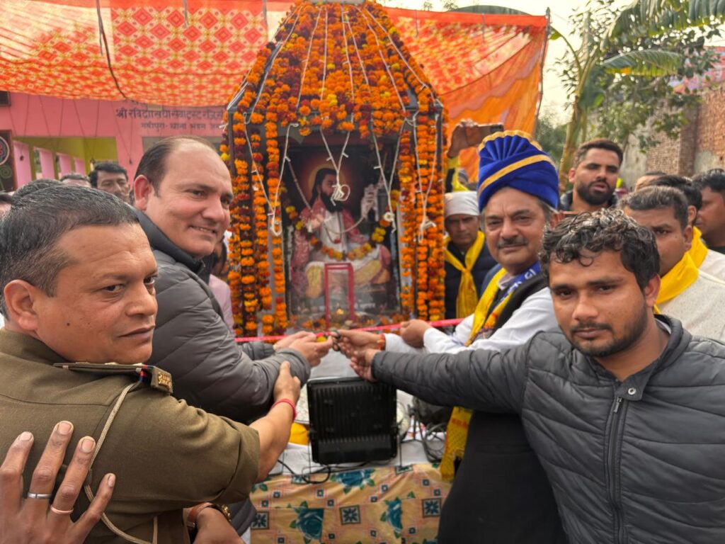 थाना भवन में श्रद्धा और उल्लास के साथ मनाया गया रविदास जन्मोत्सव, हवन यज्ञ व झांकियों का आयोजन थाना भवन कस्बे में संत शिरोमणि गुरु रविदास का जन्मोत्सव श्रद्धा, भक्ति और सामाजिक समरसता के वातावरण में हर्षोल्लास के साथ मनाया गया। इस अवसर पर कस्बे के विभिन्न स्थानों पर हवन यज्ञ का आयोजन किया गया। सामाजिक समरसता के अग्रदूत संत शिरोमणि श्रद्धय गुरु रविदास जी की 649 वी जयंती पर आयोजित पावन शोभायात्रा का शुभारंभ थाना भवन विधायक अशरफ अली, पूर्व चैयरमैन संजय शर्मा क्षेत्रअधिकारी जितेंद्र सिंह एवं थाना प्रभारी बिजेंद्र रावत साथ संयुक्त रूप से फीता काटकर शुभारंभ किया। मुख्य आयोजन थाना भवन मेला ग्राउंड स्थित रविदास मंदिर में संपन्न हुआ, जहाँ श्रद्धालुओं, समाजसेवियों एवं स्थानीय लोगों ने बढ़-चढ़कर सहभागिता की।हवन यज्ञ के दौरान गुरु रविदास जी की शिक्षाओं, उनकी सामाजिक चेतना, भाईचारे, समानता और मानवता के संदेशों का स्मरण किया गया। उपस्थित श्रद्धालुओं ने देश की सुख-समृद्धि, शांति और सद्भाव के लिए प्रार्थना की। हवन उपरांत प्रसाद वितरण किया गया, जिसमें बड़ी संख्या में लोगों ने प्रसाद ग्रहण किया।कार्यक्रम में पूर्व थानाभवन चेयरमैन ने संत रविदास के विचारों को अपने जीवन में अपनाने का आह्वान किया और समाज में आपसी प्रेम, सौहार्द व एकता बनाए रखने पर जोर दिया। पूरे आयोजन के दौरान वातावरण पूर्णतः शांतिपूर्ण, अनुशासित और श्रद्धामय बना रहा। थाना भवन कस्बे में अलग-अलग स्थानों से संत रविदास जन्मोत्सव के उपलक्ष्य में भव्य झांकियां निकाली गईं ।ये झांकियां कस्बे के मुख्य चौराहों और मार्गों से होते हुए नगर में घूमी। श्रद्धालुओं में विशेष उत्साह देखा गया । थाना भवन में संत रविदास जन्मोत्सव सामाजिक एकता, धार्मिक आस्था और भाईचारे का संदेश देते हुए भव्य रूप से मनाया है।