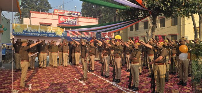 हापुड 77वें गणतंत्र दिवस के अवसर पर पुलिस थाने में भव्य कार्यक्रम आयोजित किया गए।पुलिस थाने में इस मुख्य कार्यक्रम इस प्रकार रहे:ध्वजारोहण: सुबह थाना प्रभारियों (S.H.O.) द्वारा पुलिस बल की उपस्थिति में तिरंगा फहराया गया सलामी और राष्ट्रगान: ध्वजारोहण के बाद पुलिस कर्मियों ने राष्ट्रीय ध्वज को सलामी दी और सामूहिक रूप से राष्ट्रगान गाया शपथ ग्रहण: थाने में पुलिस अधिकारियों ने संविधान के प्रति निष्ठा और नागरिकों की सुरक्षा की शपथ ली मिठाई वितरण: उत्सव के अंत में पुलिस कर्मियों और स्थानीय नागरिकों के बीच मिठाई बांटी गई